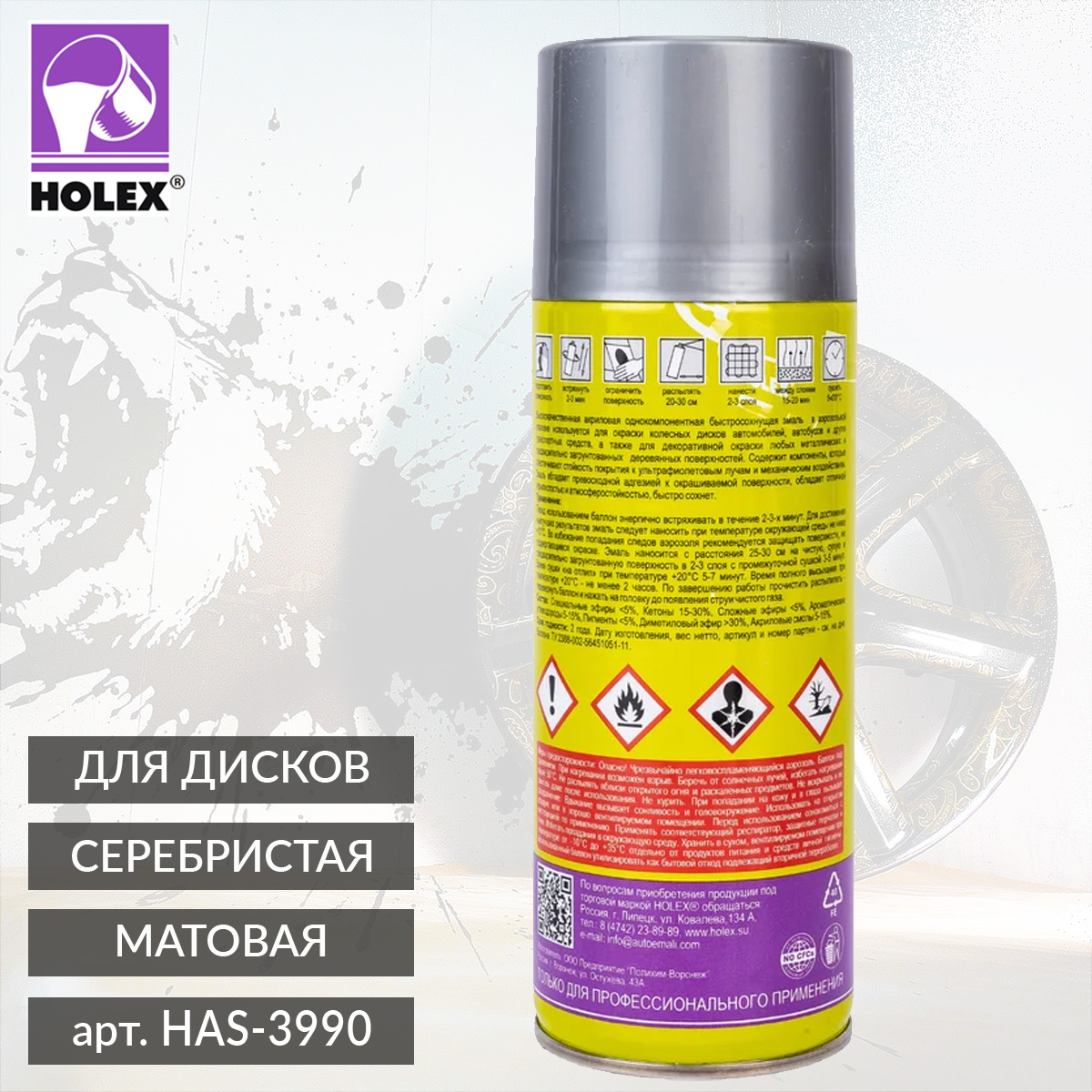 Аэрозольная высококачественная эмаль для дисков HOLEX (HAS-3990) предназначена для окраски и реставрации колесных дисков автомобилей, автобусов и других транспортных средств, а также для декоративной окраски любой поверхности. Эмаль HAS-3990 содержит специальные компоненты, повышающие устойчивость лакокрасочного покрытия к абразивному воздействию песка, летящих камней и коррозионному влиянию воды и растворов дорожных реагентов. Обладает превосходной адгезией к окрашиваемой поверхности, хорошей укрывистостью и атмосферостойкостью.
