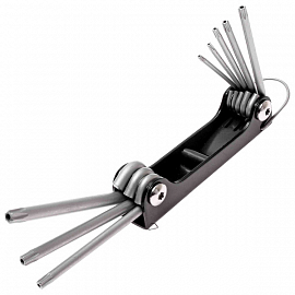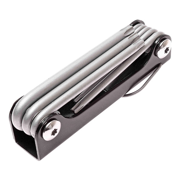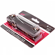 Набор ключей TORX с отверстием JTC-3503 удобный раскладывающийся набор ключей TORX с большим крутящим моментом. Особая конструкция с отверстием предназначена для вкручивания/выкручивая болтов. Изготовлены из закалённой хром-ванадиевой стали.
