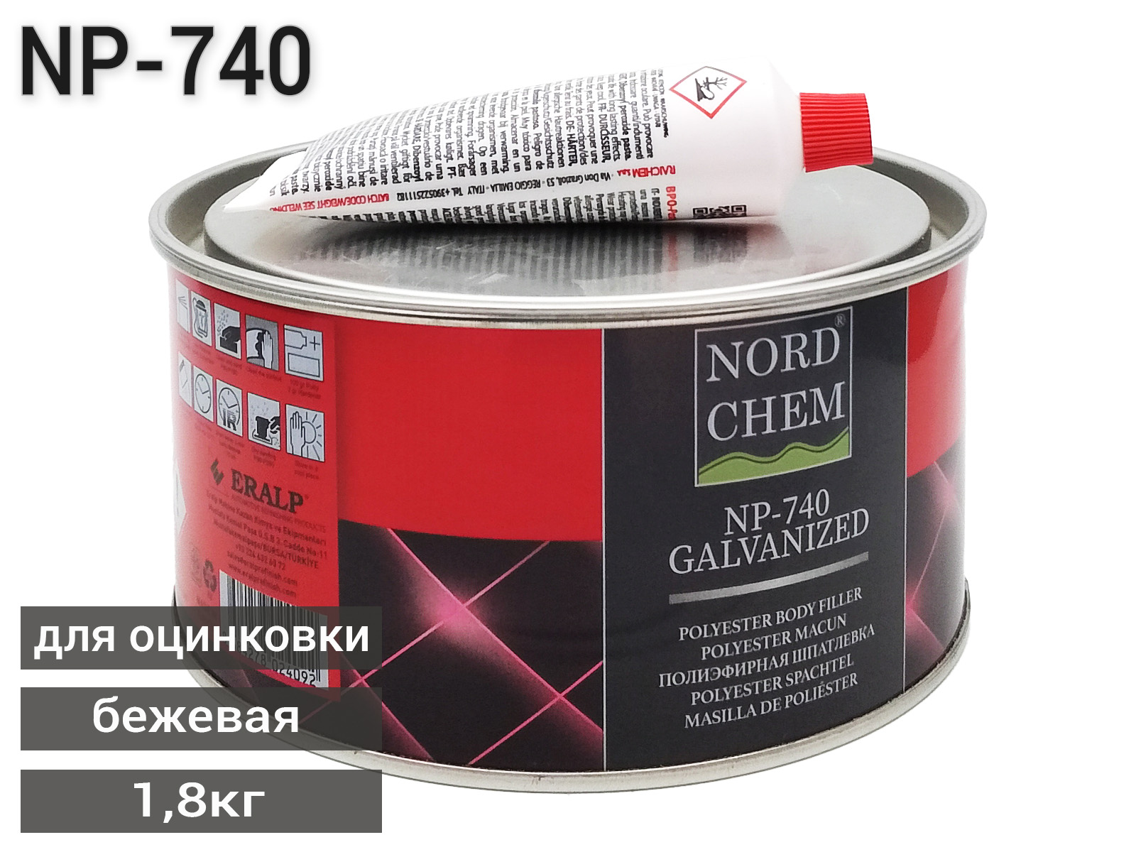 1. Шпатлевка для оцинковки NP-740 GALVA PUTTY NORD CHEM (1,8кг), арт. K13070740031