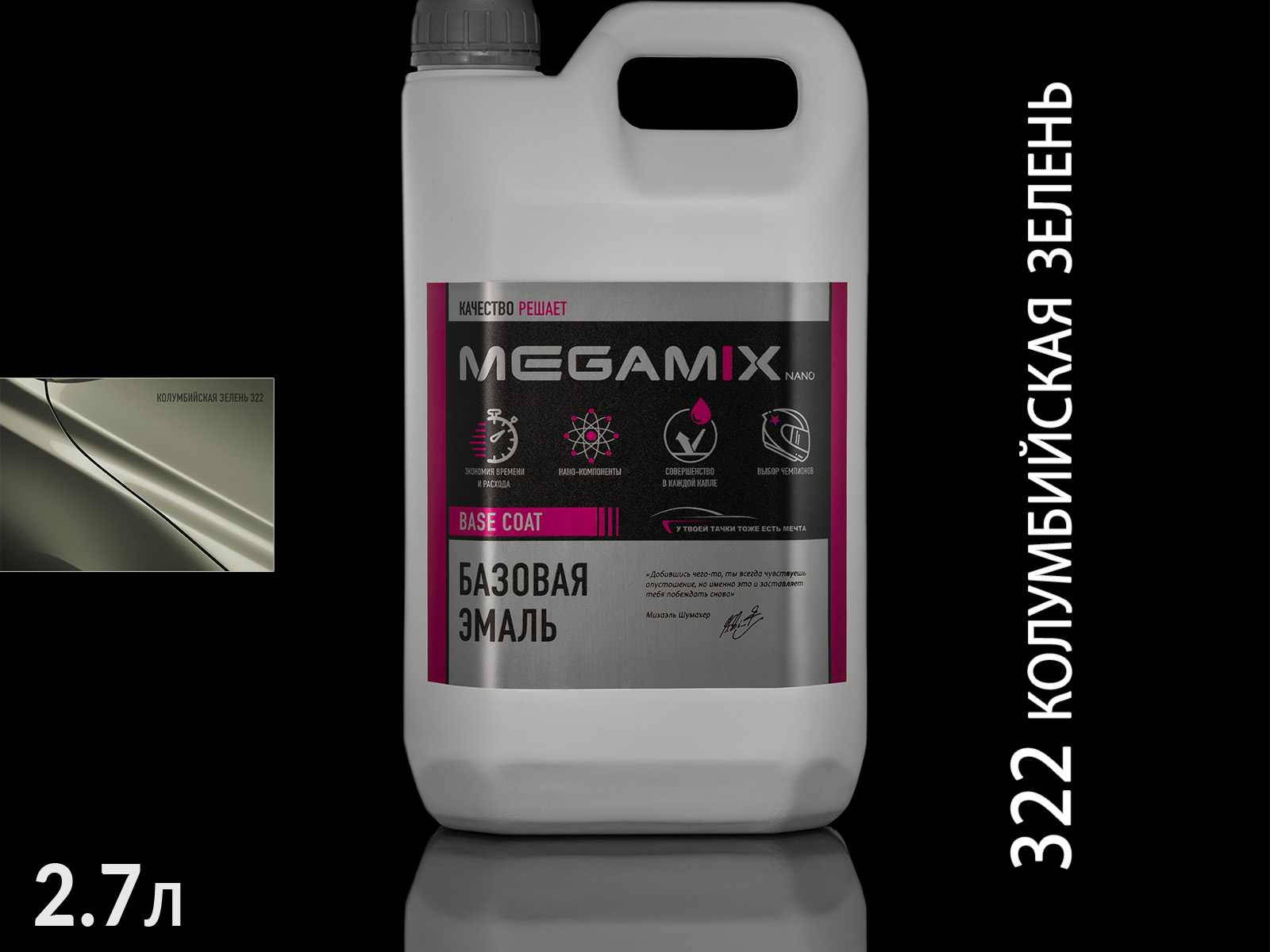 1. 322 колумбийская зелень металлик автоэмаль MEGAMIX (2,7л)1
