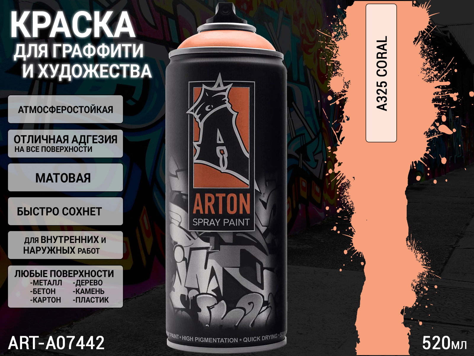 A325 коралл/CORAL краска для граффити аэрозоль ARTON (520мл)