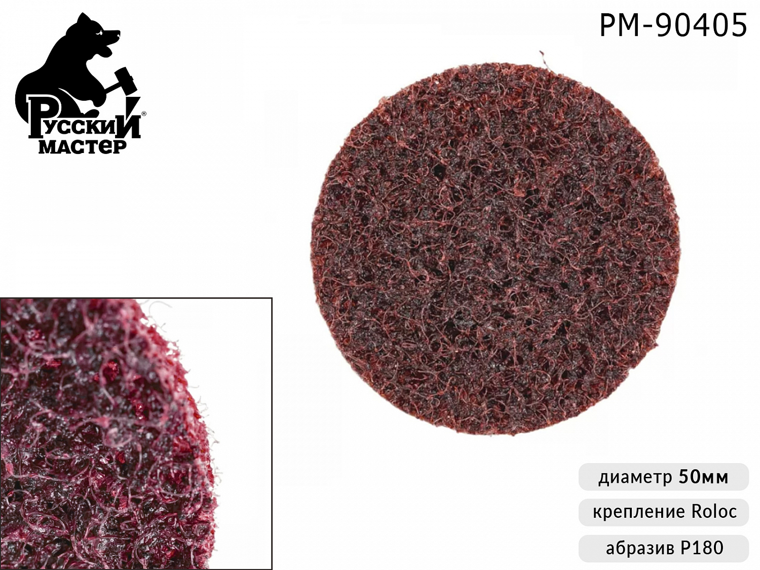 1. диск зачистной Р180 диаметр 50мм красный (крепление Roloc) РУССКИЙ МАСТЕР1