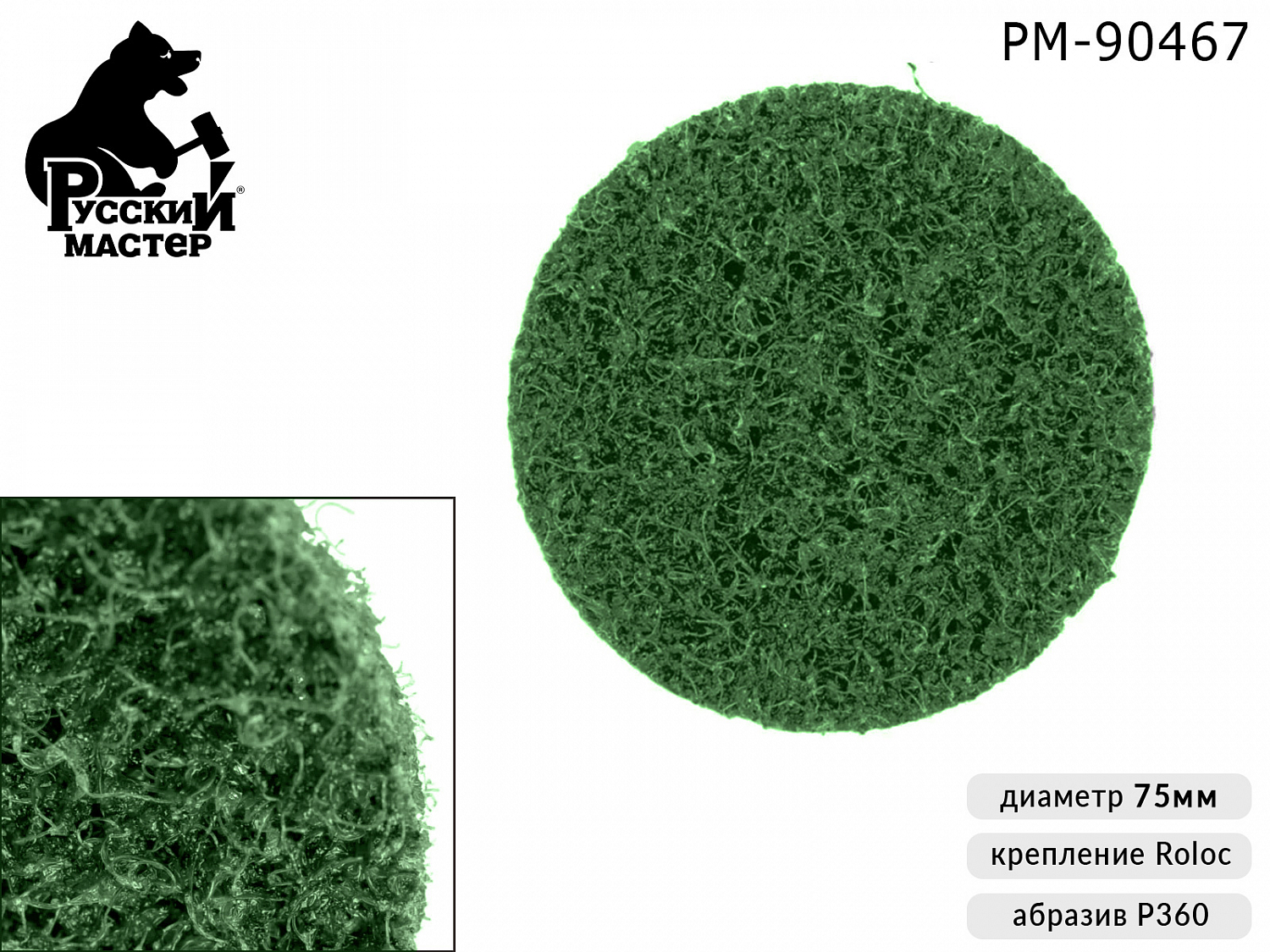 1. диск зачистной Р360 диаметр 75мм зеленый (крепление Roloc) РУССКИЙ МАСТЕР1