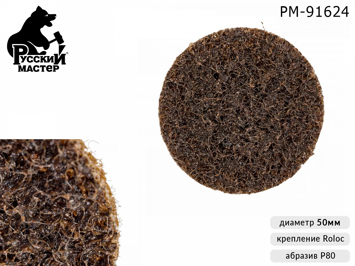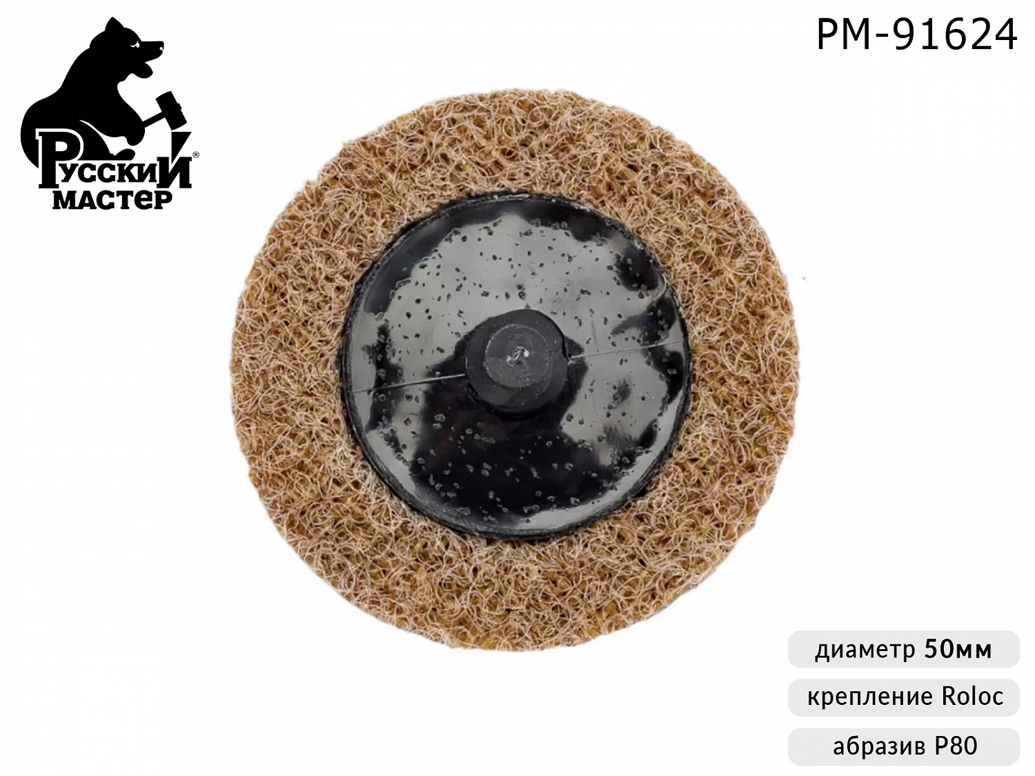 1. диск зачистной Р080 диаметр 50мм коричневый (крепление Roloc) РУССКИЙ МАСТЕР1