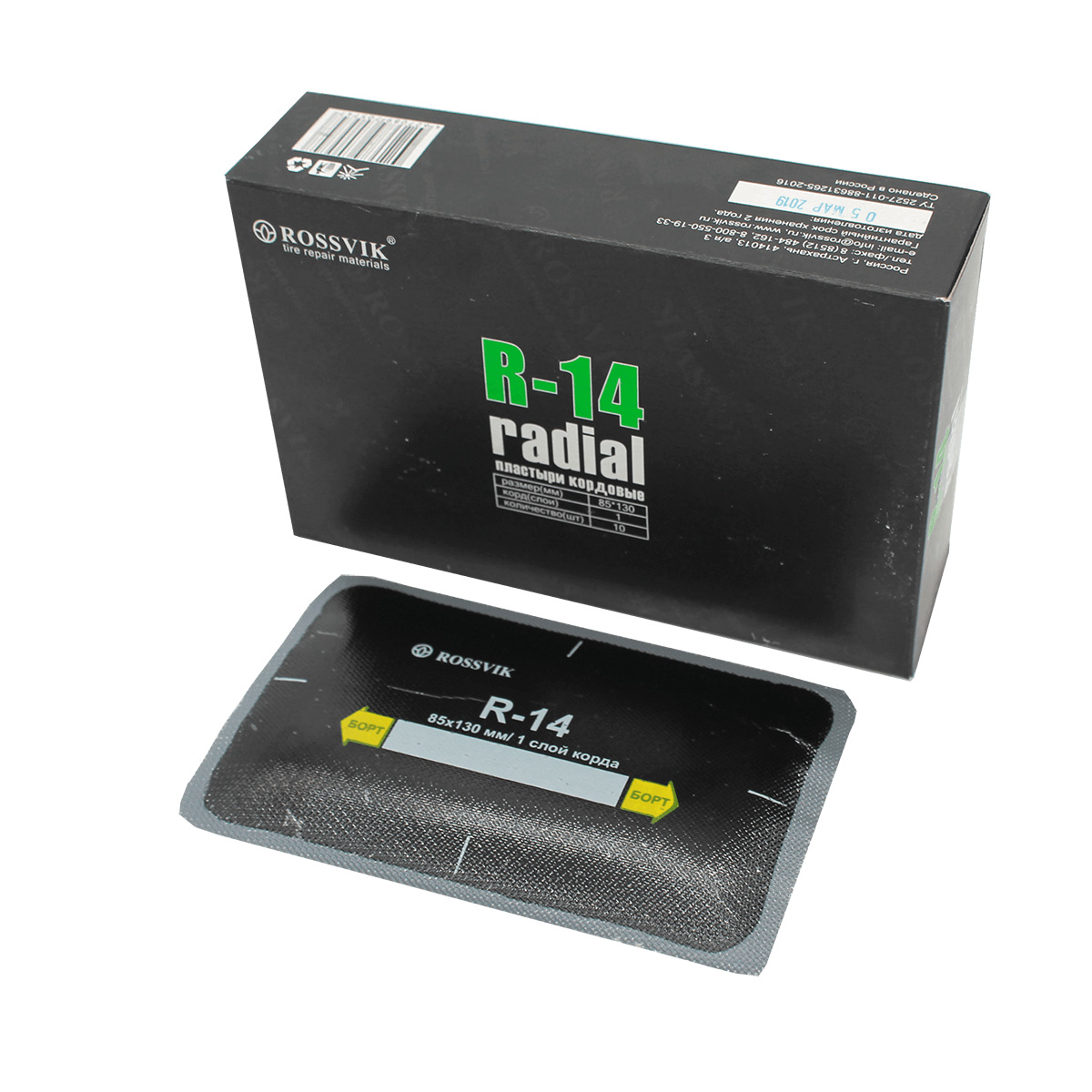 Радиальная кордовая заплатка R-14 холодной вулканизации ROSSVIK предназначена для ремонта всех типов радиальных бескамерных и камерных шин легковых автомобилей, грузового и пассажирского транспорта, сельскохозяйственной, карьерной и землеройной техники. Пластырь обеспечивает надежный и долговечный ремонт в любом ремонтопригодном месте шины. При установке пластырей "холодным" способом для достижения лучших результатов используйте пневмомолоток.