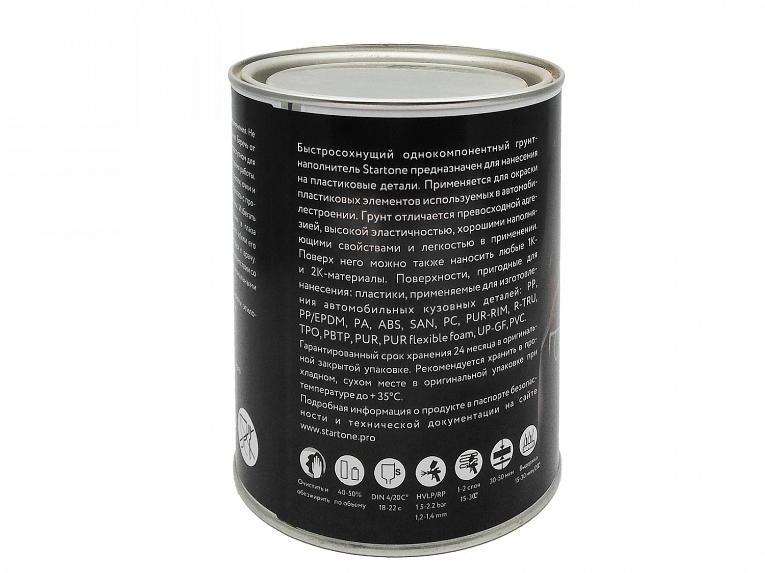 Быстросохнущий однокомпонентный грунт-наполнитель по пластикам STARTONE (SPFW4520) применяется для окраски пластиковых элементов используемых в автомобилестроении. Грунт отличается превосходной адгезией, высокой эластичностью, хорошими наполняющими свойствами и легкостью в применении.