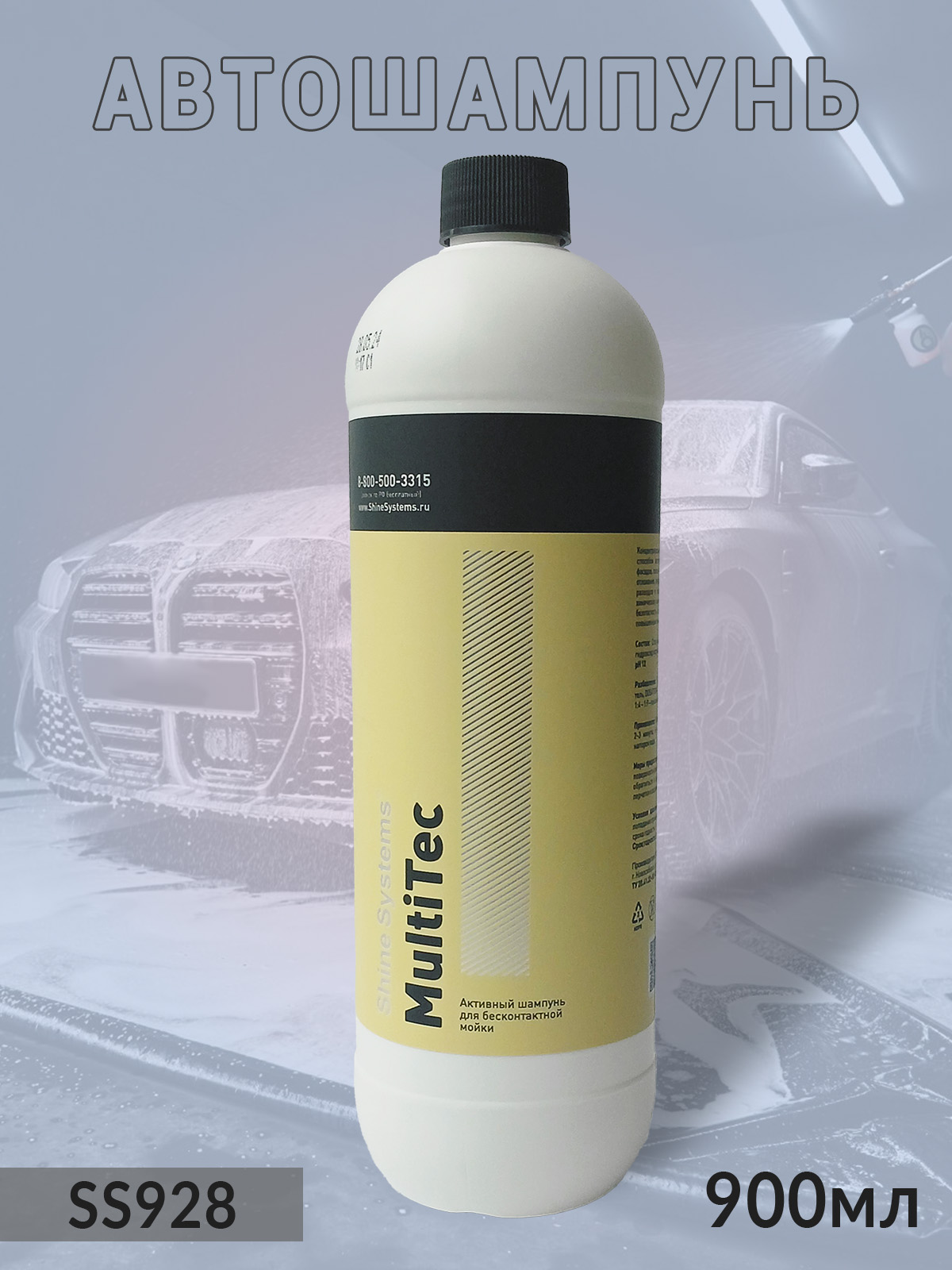 Автошампунь MultiTec от SHINE SYSTEMS (SS928) — концентрированное профессиональное средство для бесконтактной мойки. Шампунь MultiTec (SS928) — это универсальное концентрированное средство для профессиональной бесконтактной мойки самых разных объектов. Оно эффективно очищает автотранспорт, запчасти, тенты, технические помещения, фасады и полы от сложных загрязнений: дорожной грязи, солевых отложений, жировых и масляных пятен. Формула на основе европейских компонентов гарантирует высочайшее качество, безопасность и отсутствие статической белесой пленки после смыва. Средство обладает повышенным пенообразованием, что обеспечивает максимальное покрытие и глубокую очистку поверхности без разводов.