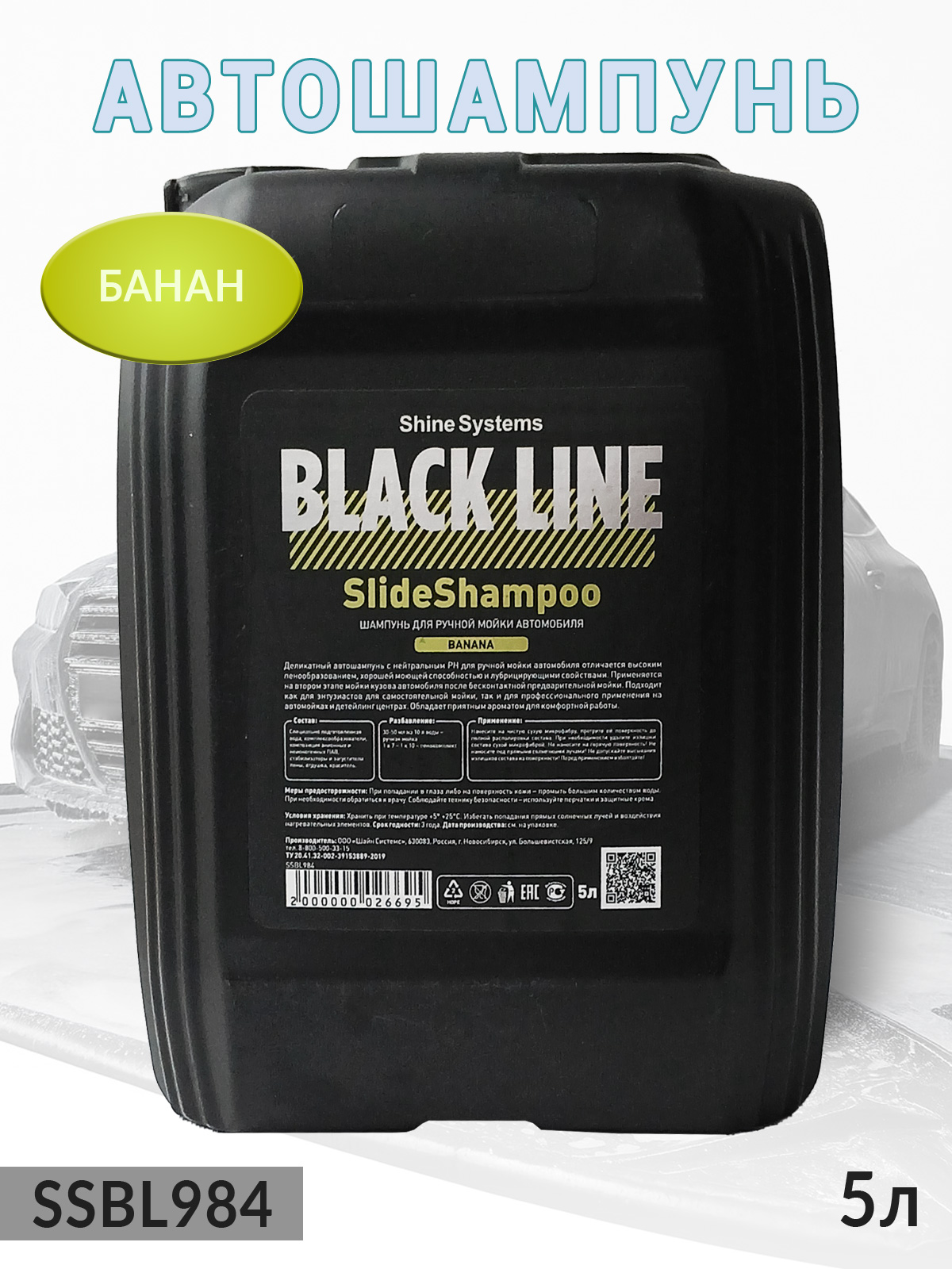 1. автошампунь для ручной мойки BLACK LINE SlideShampoo БАНАН деликатный SHINE SYSTEMS (5л)1