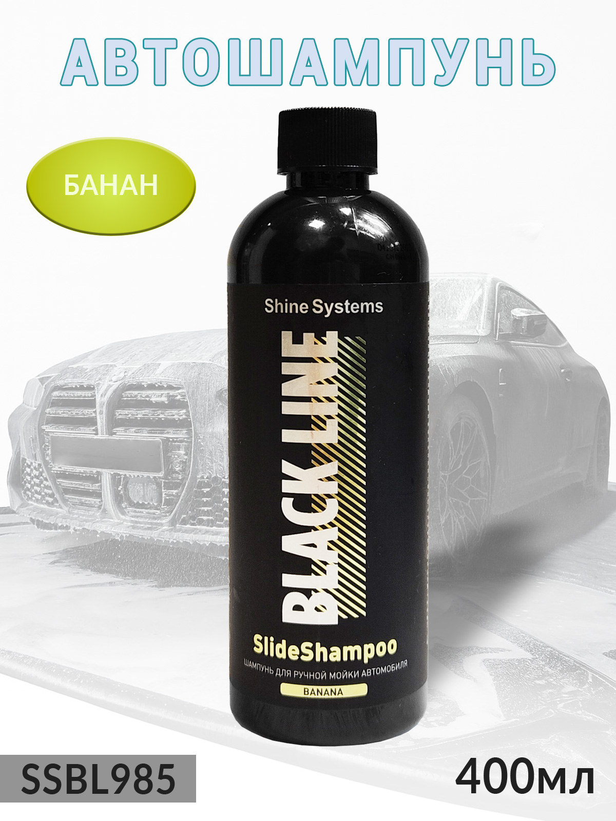 1. автошампунь для ручной мойки BLACK LINE SlideShampoo БАНАН деликатный SHINE SYSTEMS (400мл)1