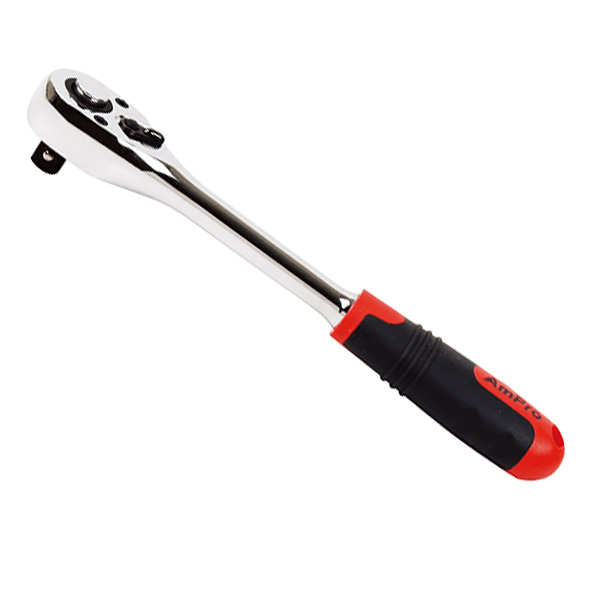 Ключ трещеточный 1/2" с карданом AMPRO T29820 служит для более простого и эффективного выполнения крепежных работ. Процесс не требует постоянного переставления трещотки за счет специального механизма, что сводит к минимуму утомление рабочего. Инструмент подходит для частого использования в профессиональной сфере деятельности.