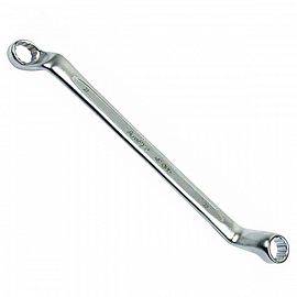 Ключ накидной изогнутый AMPRO T40623 изготовлен из углеродистой стали. Ключ имеет два кольцевых зева разных размеров. Профиль кольцевого зева имеет 12 граней, что увеличивает площадь соприкосновения рабочих поверхностей и снижает риск деформации граней крепежа при монтаже. Накидные рабочие части ключа смещены относительно его рукоятки на 75°, что позволяет работать в труднодоступных местах.