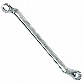 Ключ накидной изогнутый AMPRO T40632 изготовлен из углеродистой стали. Ключ имеет два кольцевых зева разных размеров. Профиль кольцевого зева имеет 12 граней, что увеличивает площадь соприкосновения рабочих поверхностей и снижает риск деформации граней крепежа при монтаже. Накидные рабочие части ключа смещены относительно его рукоятки на 75°, что позволяет работать в труднодоступных местах.