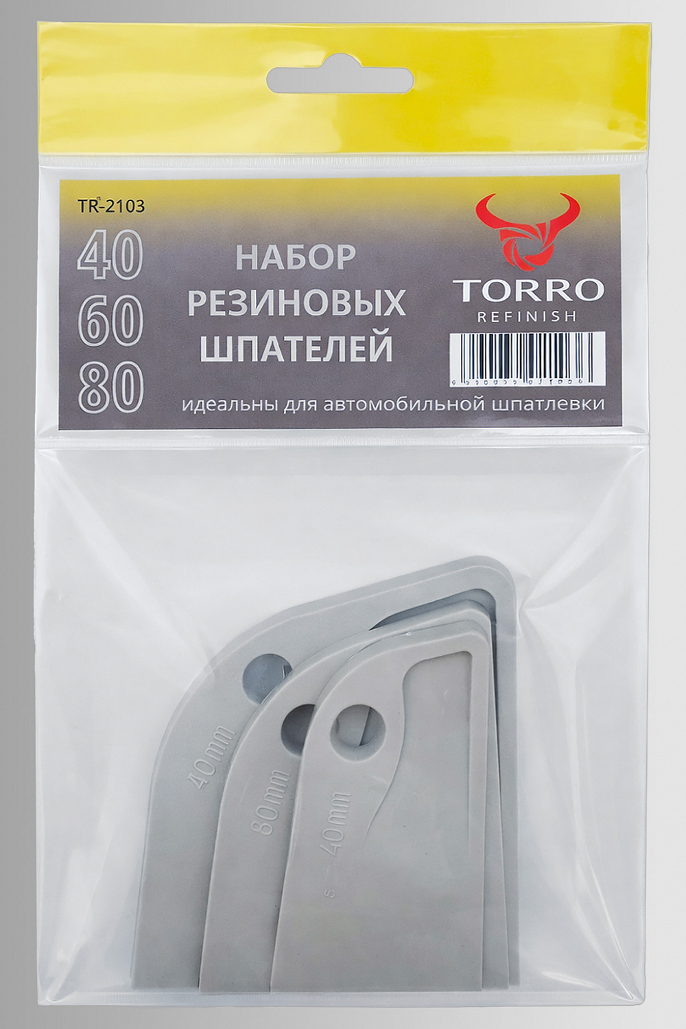 Набор резиновых шпателей TORRO (TR-2103) для кузовного ремонта — универсальный комплект для нанесения и выравнивания шпатлёвки и ремонтных составов на кузове автомобиля. Разные размеры позволяют удобно обрабатывать как мелкие сколы и царапины, так и более крупные участки деталей.