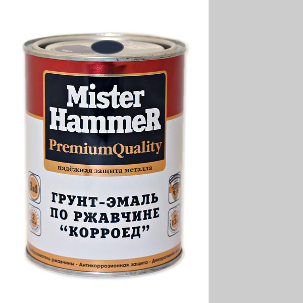 Грунт-эмаль по ржавчине светло-серый RAL 7035 КОРРОЕД Mister HardMax (0,9кг ) преобразует ржавчину. Препятствует дальнейшему возникновению подслойной коррозии. Не требует предварительного грунтования. Быстро высыхает. Образует бензомаслостойкое, декоративное, атмосферостойкое покрытие. Может использоваться, как "мокрый по мокрому" с межслойной выдержкой 5-10 минут, как самостоятельное покрытие наносится в 3 слоя ( 1 слой действует как преобразователь ржавчины, 2- как антикоррозионный грунт, 3 - как финишное декоративное покрытие) кистью, валиком, краскораспылителем.