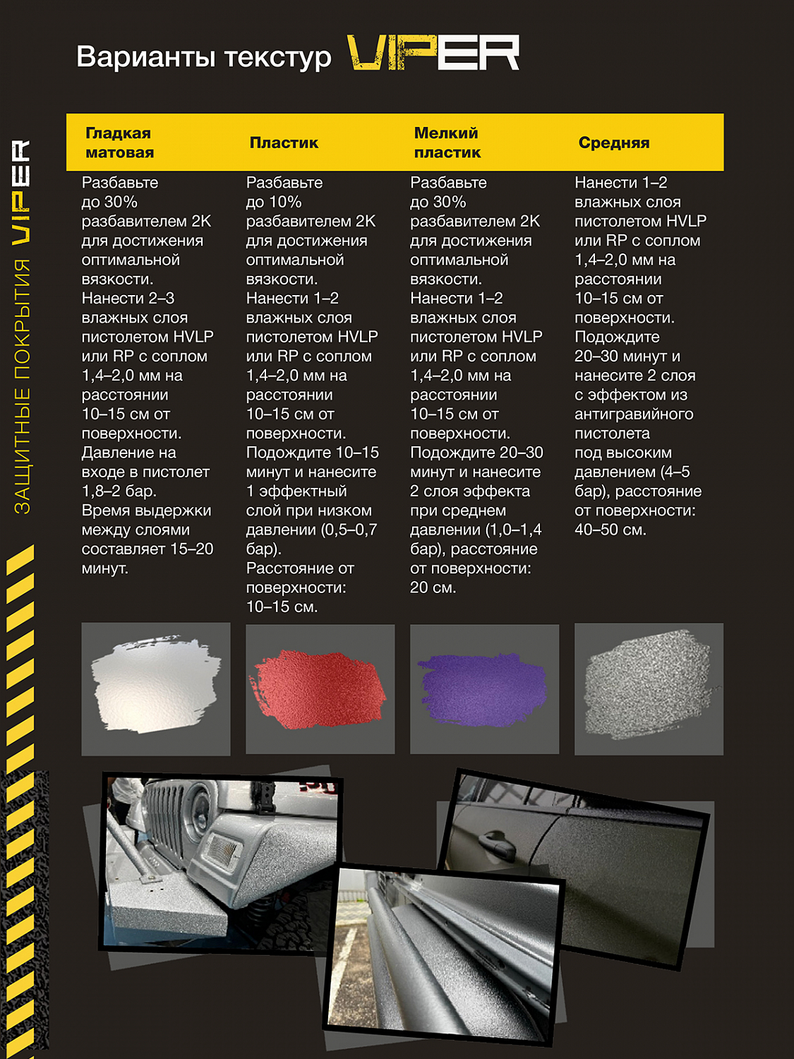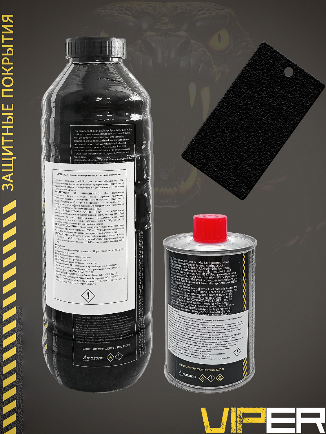 Защитное покрытие VIPER от AMAZONA PAINTS — сверхпрочное двухкомпонентное защитное покрытие премиум-класса, разработанное для максимальной защиты кузова автомобиля и любых других поверхностей, подвергающихся интенсивным нагрузкам.