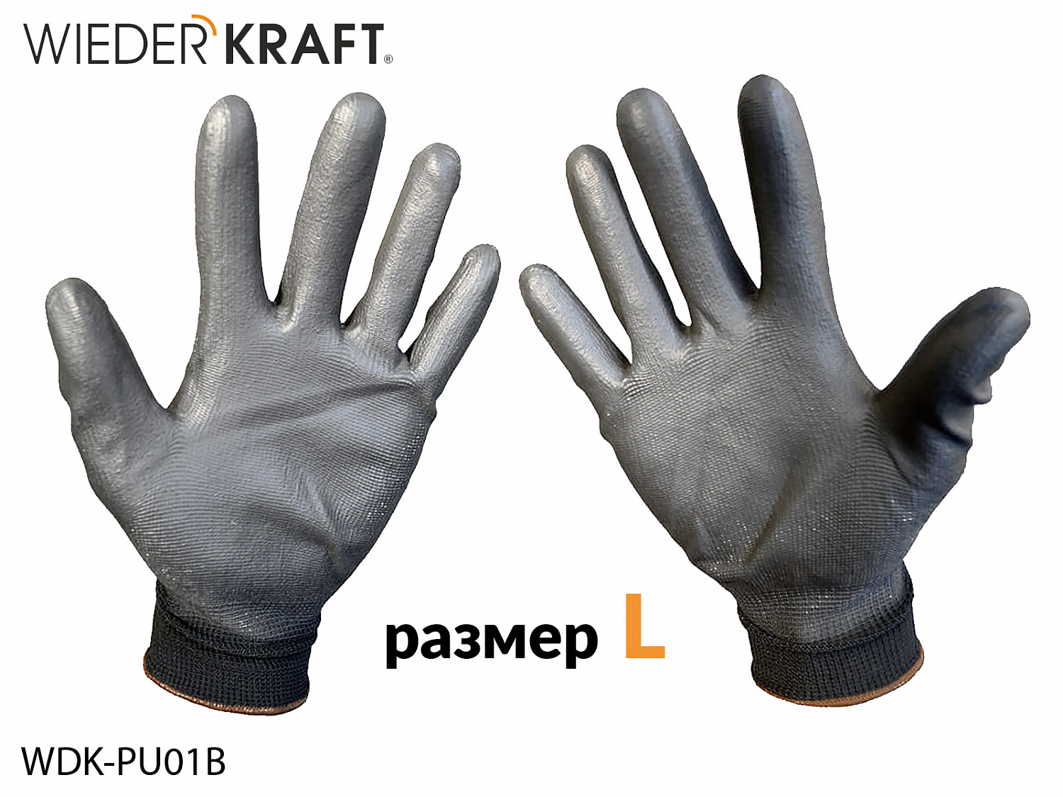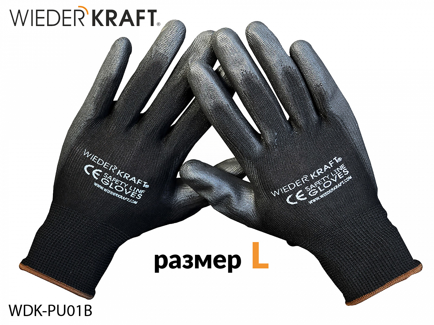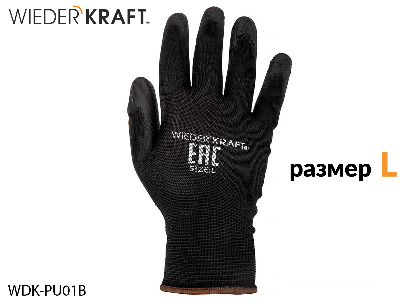 1. перчатки с PU покрытием L черные для механических работ WIEDERKRAFT (пара)1