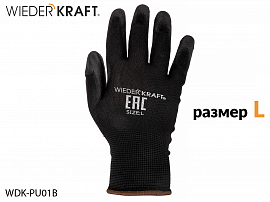 Перчатки с PU покрытием L черные для механических работ WIEDERKRAFT (пара)