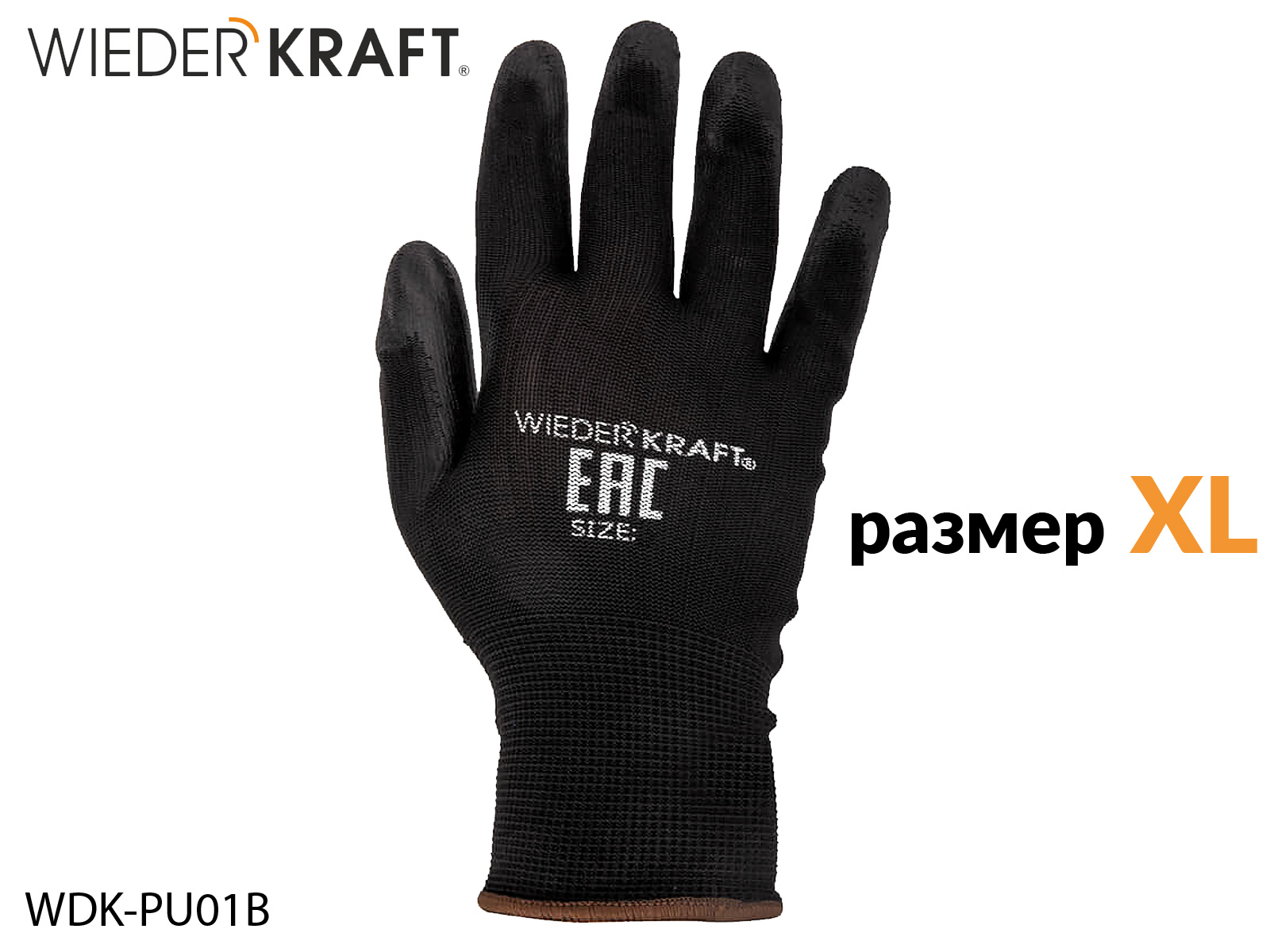 Перчатки с PU покрытием XL черные для механических работ WIEDERKRAFT (пара)