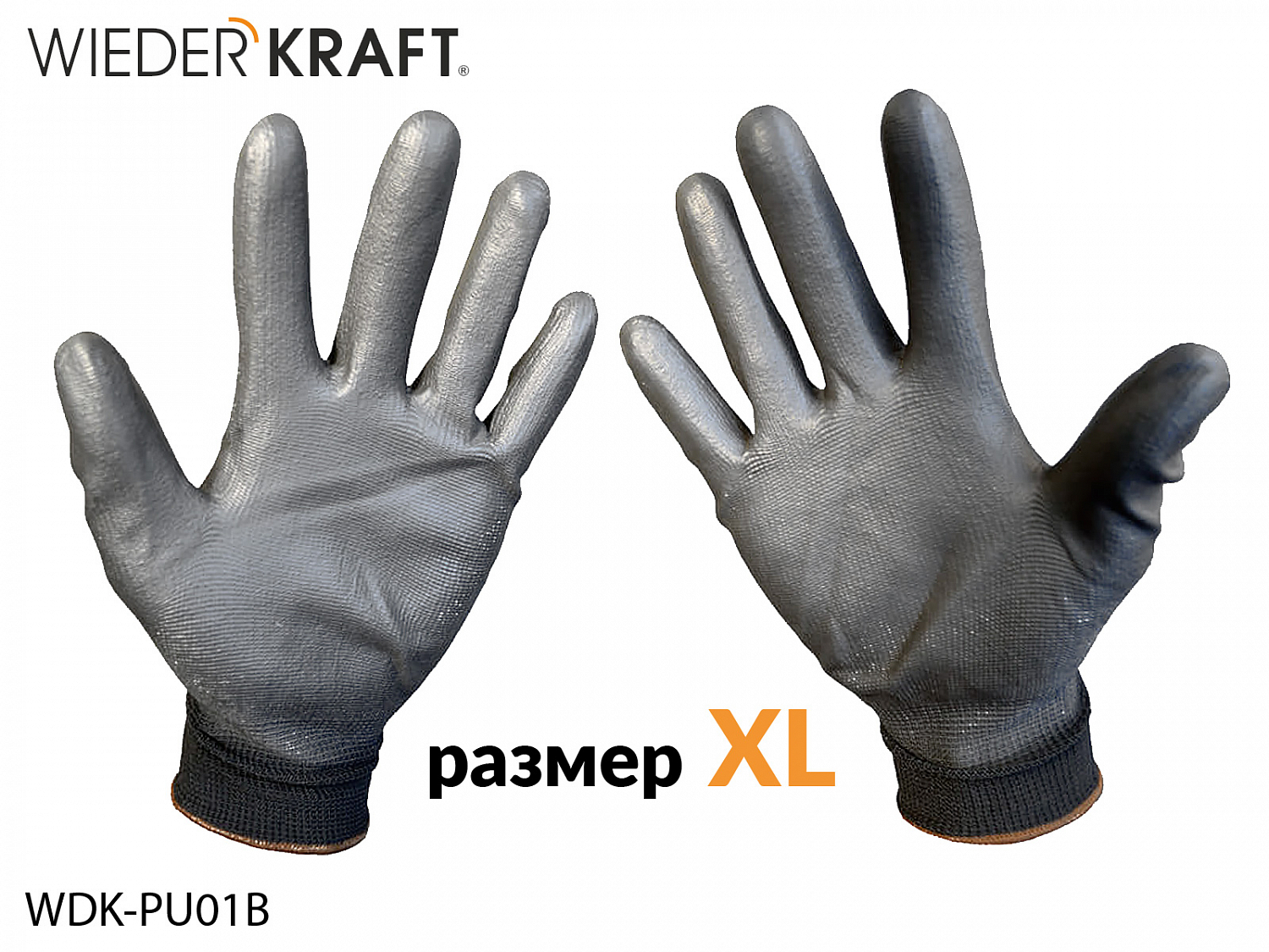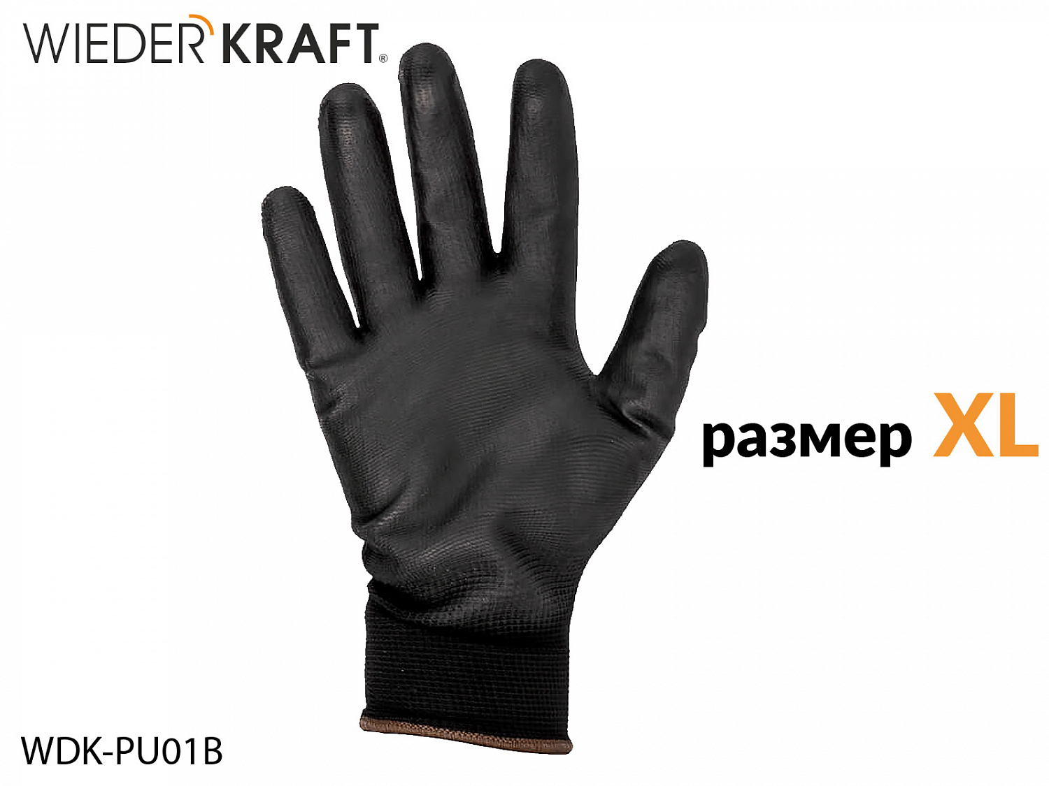 1. перчатки с PU покрытием XL черные для механических работ WIEDERKRAFT (пара)1