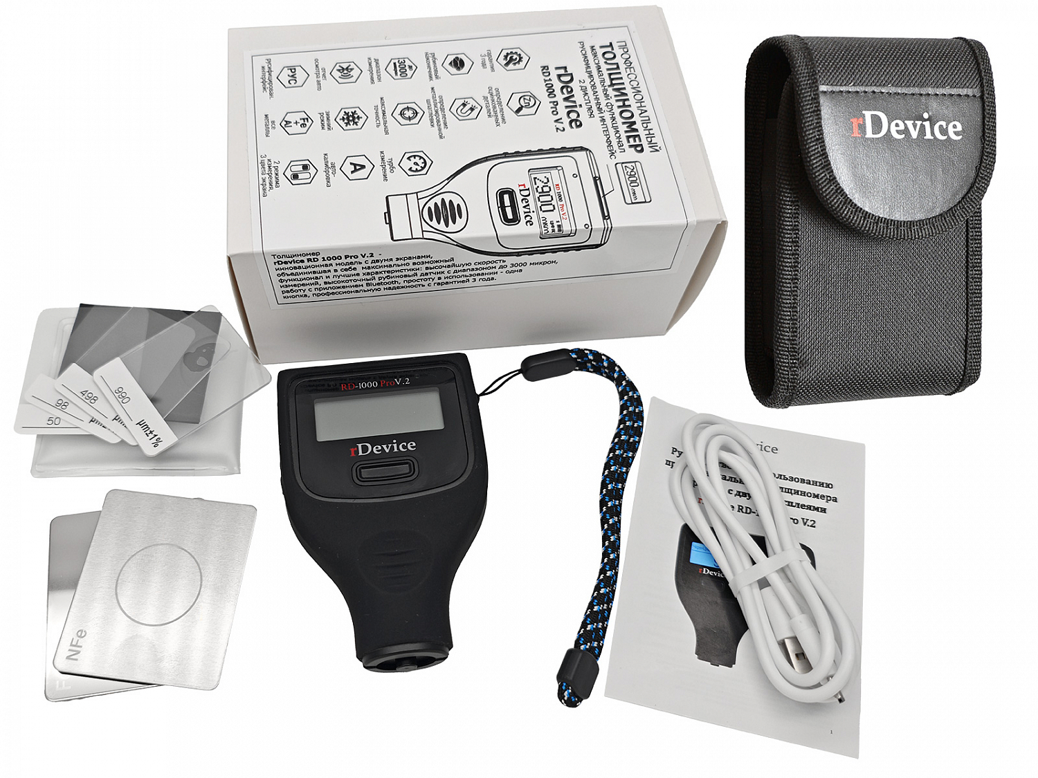 Профессиональный толщиномер rDevice RD-1000 PRO V.2 - прибор для профессионального автоподбора, первый в мире толщиномер с двумя экранами, максимально возможный функционал объединенный в одном приборе, плюс максимальная надежность. Без проблем определит, если для восстановления авто использовалась алюминиевая шпатлевка, проверит оцинкована деталь или нет (заменена на китайский аналог). Для определения толщины используется самый точный и дорогой, рубиновый (нестираемый датчик), с расширенным диапазоном работы до 4000 микрон и молниеносной скоростью измерений. Удобная, эргономичная форма, отлично зарекомендовавшая себя при использовании в профессиональном авто подборе, и невероятная простота в использовании (1 кнопка, инструкцией можно не пользоваться). Функция Bluetooth для работы с приложением по созданию АВТО ОТЧЕТОВ, плюс поддержка коммерческих приложений использующихся в трейдине. (актуально для автосалонов). Толщиномер rDevice RD-1000 Pro V.2 объединил в себе максимально возможный набор имеющихся на рынке опций и в данный момент является самой передовой моделью.