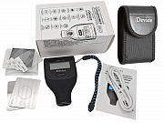 Эргономичный дизайн, компактный размер - черный строгий дизайн, прибор не просто компактный, он удобный. Эллипсойдное основание толщиномера, позволяет быстрее находить упор для замера, так же, у толщиномера присутствует V-образный паз, для изменения изогнутых поверхностей. Прибор изготовлен из качественных материалов. Резиновый противоударный бампер, защищает от ударов и падений, надежно фиксирует прибор в руке, в комплекте идут шнур на руку и сумка для хранения. Экран толщиномера для большей защиты утоплен в корпус прибора, и расположен под специальным углом, это позволяет видеть дисплей прибора производя измерения поверхностей расположенных под любыми углами.